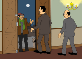 Orologiul sună ora unsprezece. Pe neaşteptate se aude soneria. Moşierul Godar sare ca un arc de pe scaun strigând:
