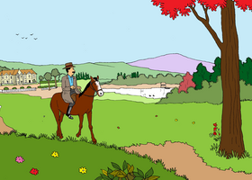 După un timp se opreşte lăsându-şi calul să pască într-o păşune cu iarbă deasă. Privirile-i se pierd în depărtările văii în timp ce nu departe de el, credinciosul lui fermier, bătrânul Ians, se aşează ostenit la umbra unui copac. Domnul Godar se îndreaptă spre el.