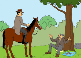După un timp se opreşte lăsându-şi calul să pască într-o păşune cu iarbă deasă. Privirile-i se pierd în depărtările văii în timp ce nu departe de el, credinciosul lui fermier, bătrânul Ians, se aşează ostenit la umbra unui copac. Domnul Godar se îndreaptă spre el.